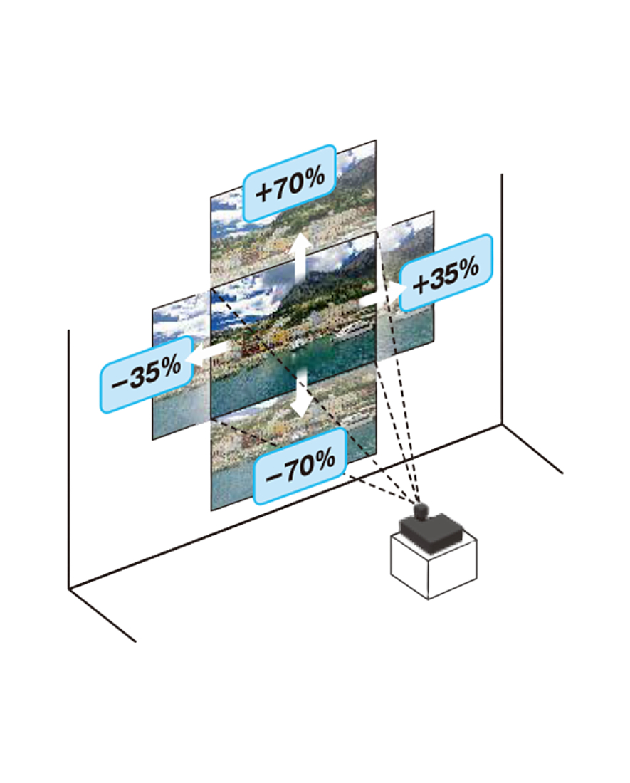 - Proyección de corta distancia (ejemplo: imagen de 254 cm con solo 72 cm de distancia).