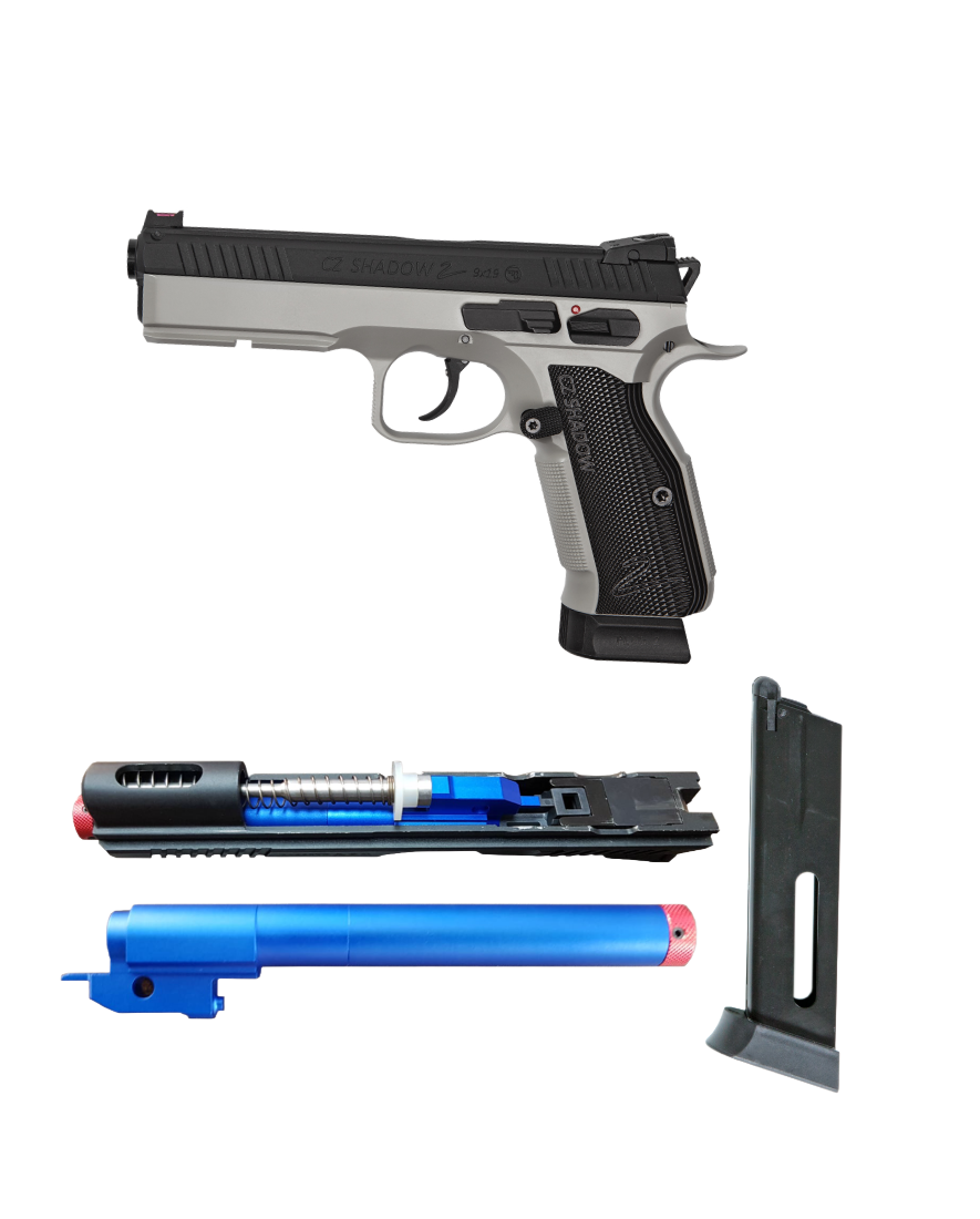 Esta réplica es funcionalmente idéntica a la CZ Shadow 2 real, permitiendo a los tiradores disfrutar de la misma ergonomía, desarme, corredera metálica, cargador libre y acción de blowback realista, además de una textura de agarre mejorada.
