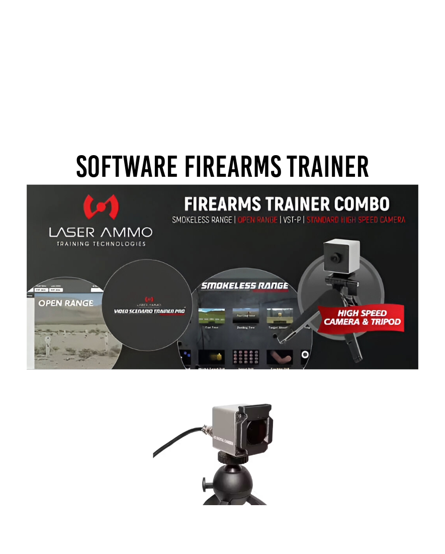 El paquete Firearms Trainer Simulator Combo incluye una cámara de alta velocidad de lanzamiento estándar para láseres IR y Red SureStrike™.
